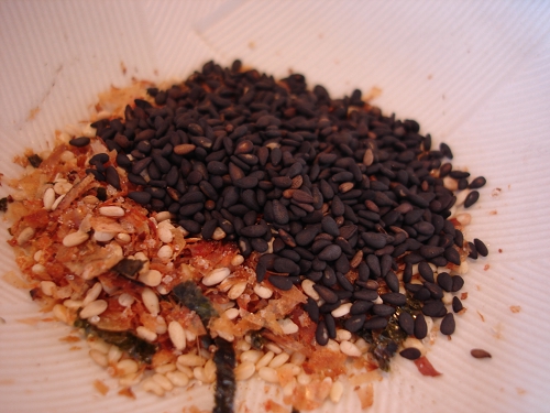 內容有黑芝麻、白芝麻、柴魚片?、海苔片…等。
