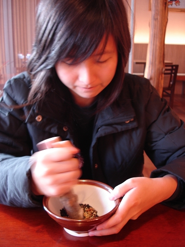 芝麻可以選擇自已磨或是由服務人幫你磨好,當然是自已磨比較有趣囉!^_^