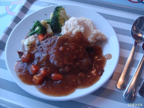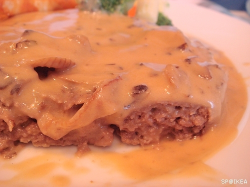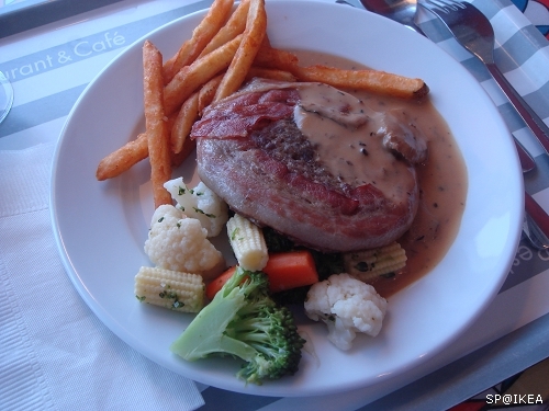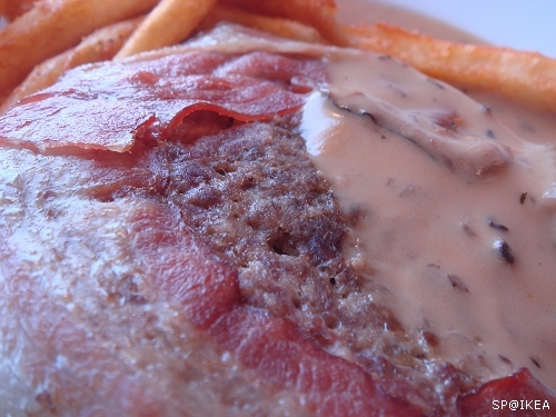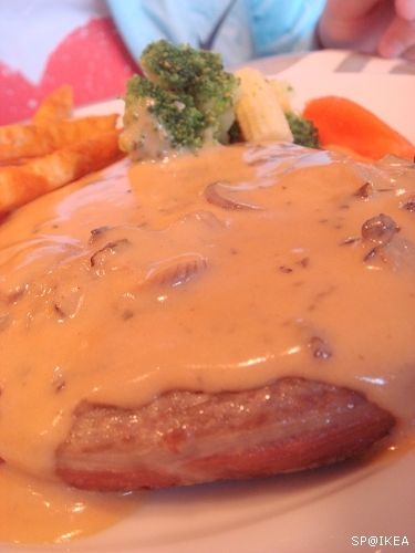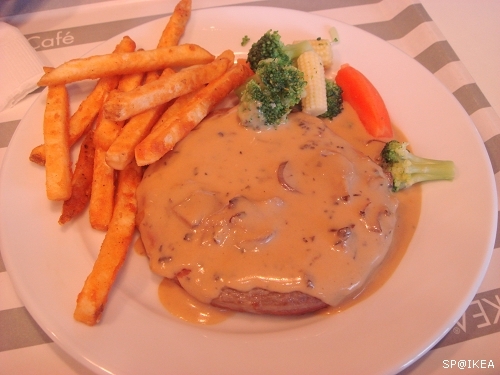 期間限定的培根漢堡排,份量很大哦!(IKEA的餐份量都很大),漢堡排最外面包了一圈培根,淋上好吃的蘑菇醬,讚啦!XD