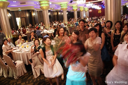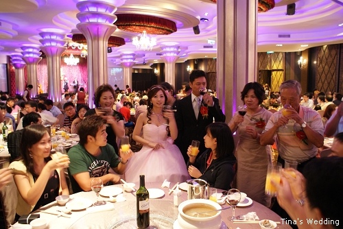 敬酒囉!這套粉紅色禮服也不錯看,嗯…還是淺色系比較年輕的感覺。