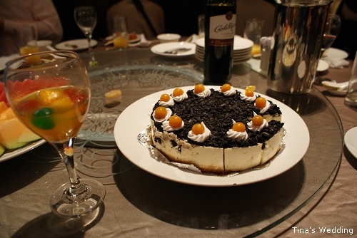 甜點時間,起司蛋糕登場,好吃的啦!第一次吃到辦桌的甜點是超司蛋糕,優啊~XD
