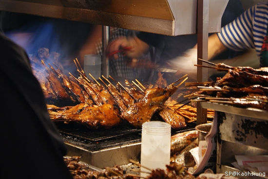 除了很多人排隊之外,這…好像烤的太黑了一點吧!?重點是那個黑感覺不是雞肉上顏色,而是沾上了很多烤網上的黑炭,嗯…就當作是我們沒眼光吧!呵…