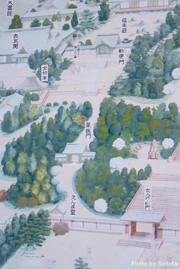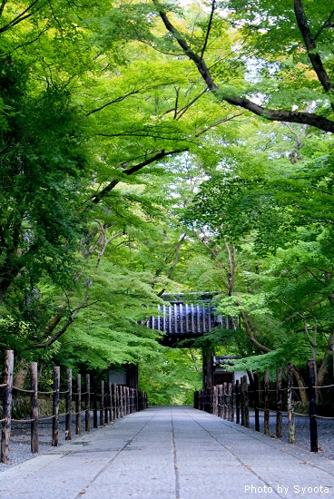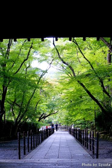 這就是著名的紅葉參道,以「藥醫門」為中心可分為前後兩段,入秋之後,兩旁的綠葉將全部變成似火的楓紅,地上也舖上一層紅色的楓紅地毯。
