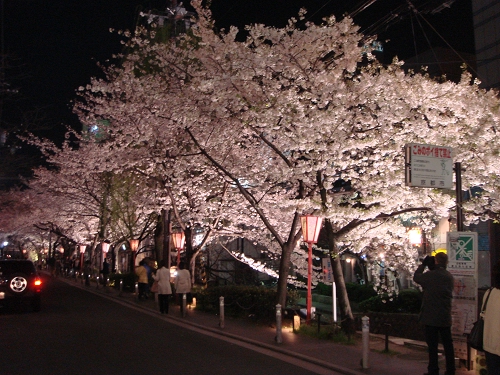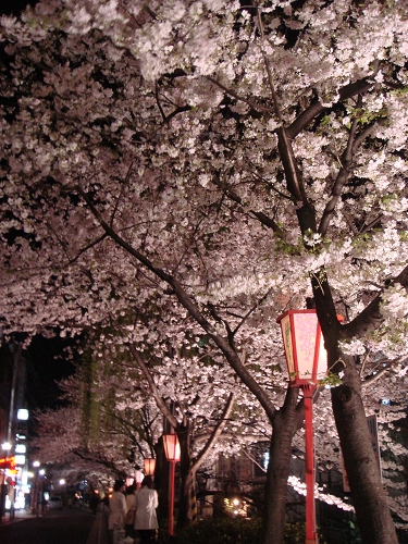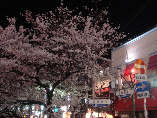 不過光彩奪目的各式店家招牌與櫻花卻好像無法融合在一起,有點可惜了。