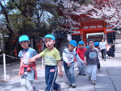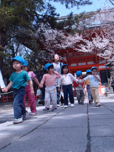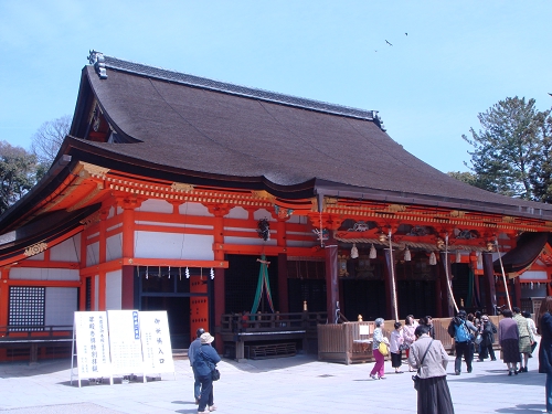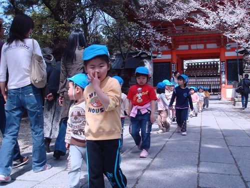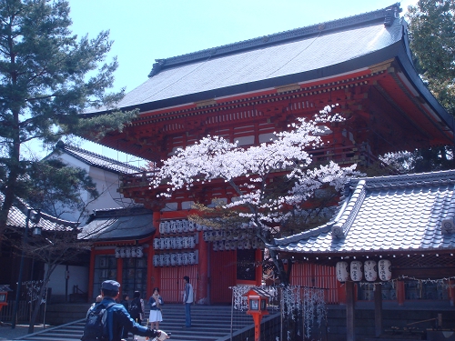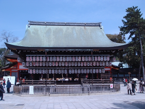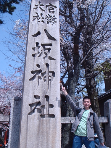 走往甲部歌舞練場的途中我們順便逛了「八坂神社」,手上還拿著在圓山公園買的烤竹筍哩!哈…XD