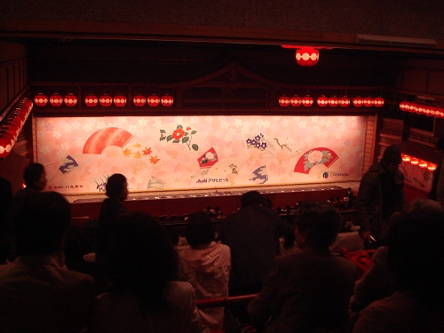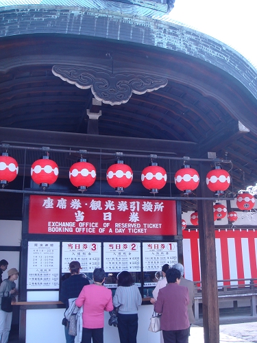 終於入場囉!最便宜的二等自由席果然在最高最後面的地方,想看清楚藝伎們華麗的服飾跟美麗的臉蛋的話,視力不好的人得帶個望遠鏡囉!呵…XD